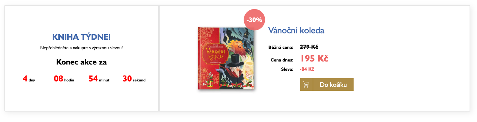 - Pracujte s časovým tlakem - ukažte kolik času zbývá do konce akce, kolik času zbývá do posledního dne, kdy garantujete odeslání pod stromeček.