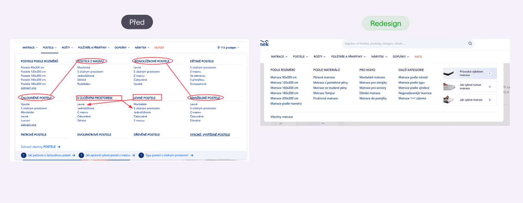Výsledkem je vyšší proklikovost v rámci kategorií a plynulejší pohyb uživatelů dál po webu.